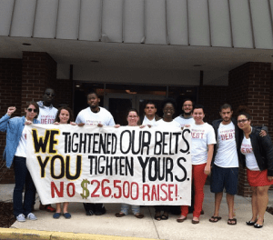 Protesting students characterized Hitt’s increase as “reprehensible” and “hypocritical,” particularly during a time of “supposed austerity” and when they themselves have had to endure four straight years of tuition hikes of 15 percent.