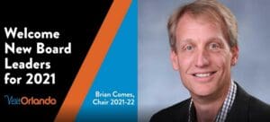 Brian Comes, Area Vice President for Hyatt Regency Orlando, will serve a two-year term as the new Board Chair through Dec. 31, 2022. The new Board of Directors will be: