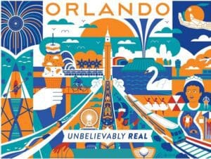 Designed by local Orlando artist Clark Orr, the mural is an initiative that is part of the region’s “Unbelievably Real” brand platform, a first-of-its-kind partnership between the two organizations developed to speak to leisure travelers, meeting planners, workforce talent and business audiences.
