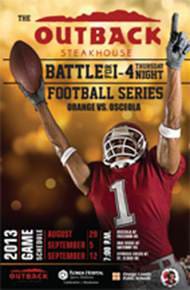Orange County Public Schools District Athletic Director Matthew Fitzpatrick said, “The Outback Steakhouse “Battle for I-4” football series is an exciting new addition to our local football schedules. It is an opportunity for local fans from both Orange and Osceola counties to come out and see a game on a Thursday night and get an idea how their county measures up against their neighbors.”