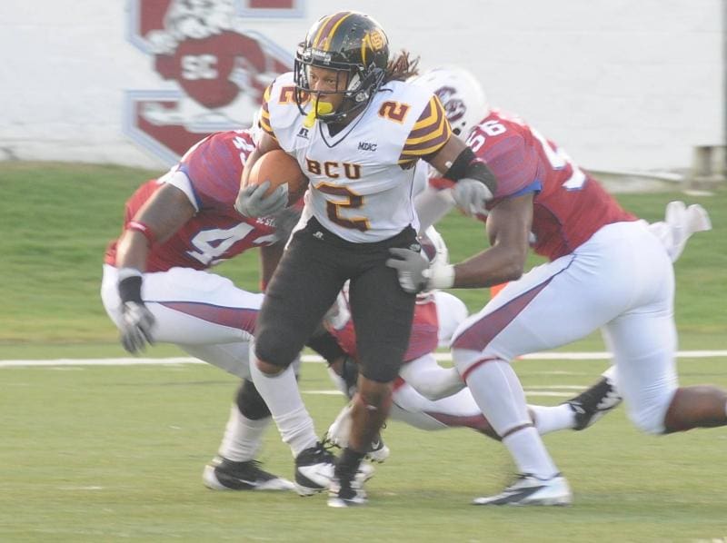 South Carolina State jumped out to a quick 7-0 advantage at the 9:15 mark in the first quarter. THEN scored their second touchdown on a 3-yard score with 6:18 left for a quick 14-0 lead. Some B-CU miscues account for some of that foolery. Damned if this scenario isn’t similar to what went down last Sunday against Alabama State. (I’m just saying). Also similar was B-CU’s ability to turn adversity into fuel.