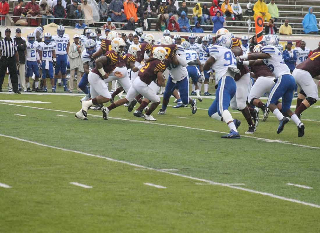 For Hampton, Junior Jorrian Washington had 91 rushing yards on 14 carries. Freshman quarterback Bryan Bailey was 8-for-20 for 55 yards, Antwon Chisholm was good for 44 yards receiving. The Pirates fell to 4-7 on the season and 4-3 in MEAC play.