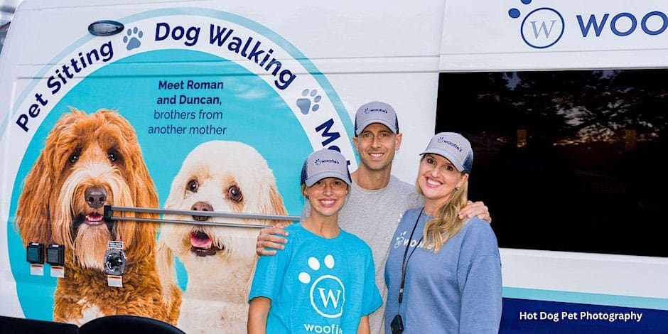 Tara and Jeremy are parents to daughter Ella, who attends university and works at another Woofie’s franchise near where she goes to school. The family’s two “fur babies,” Roman, a mini-Australian Labradoodle, and Duncan, a Cavachon, are pictured on the Woofie’s West Orlando mobile van.